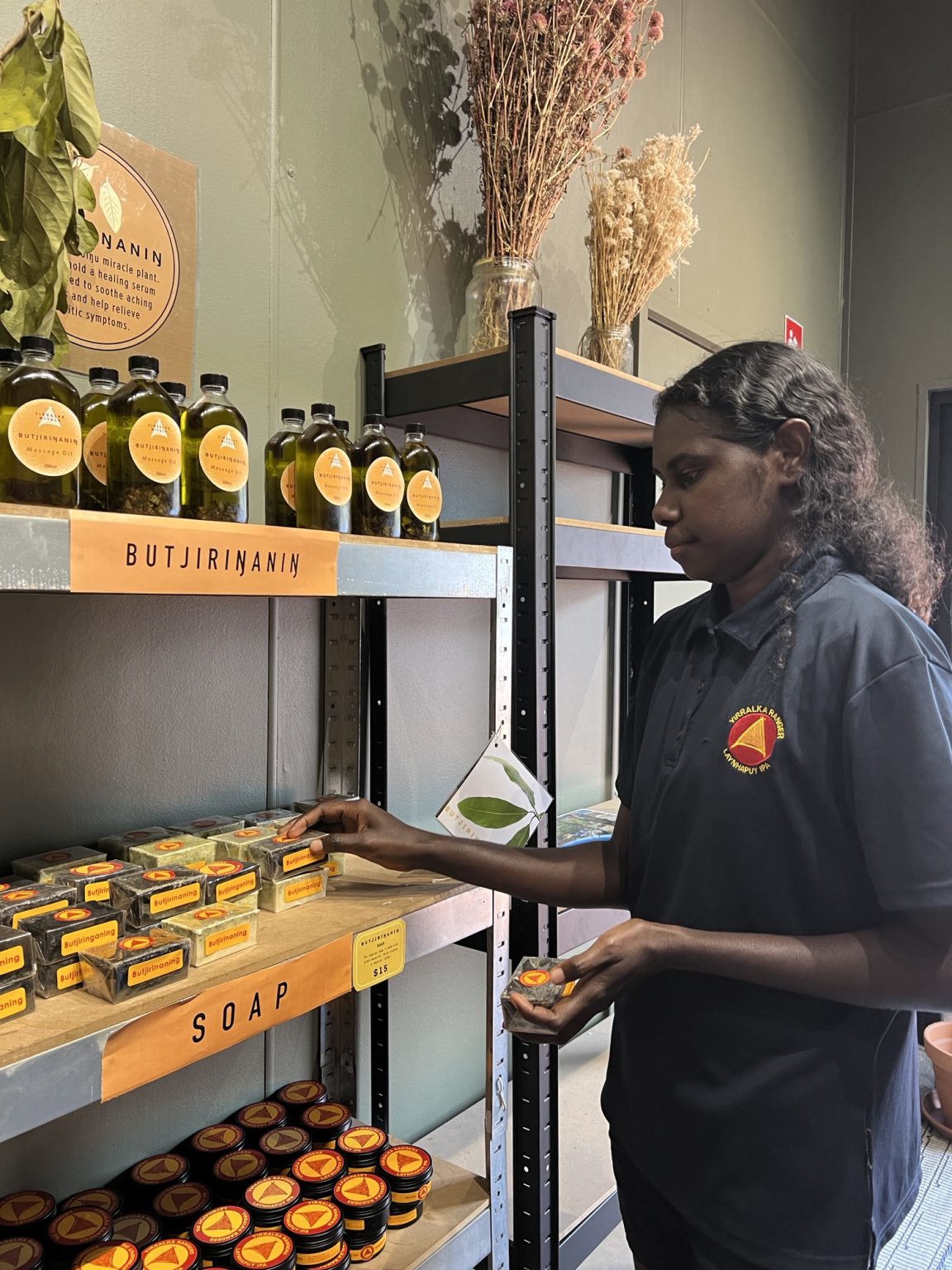 The program supports female (Miyalk) rangers to practice Yolŋu healing methods, using local native flora in a variety of personal care products, such as bush scrubs, soaps and oils.