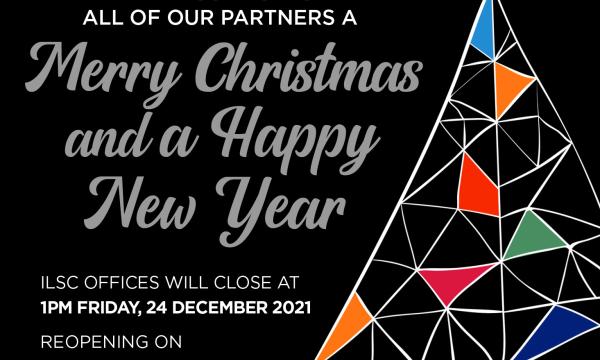ILSC offices will close at 1pm, Friday 24 December 2021 reopening on Tuesday, 4 January 2022.